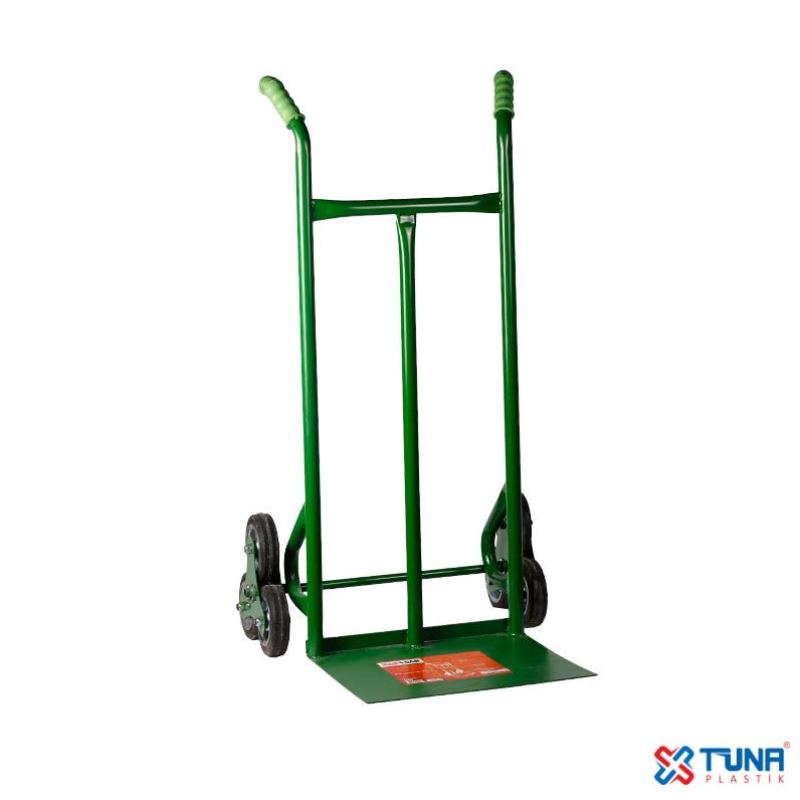 Bu ürünümüzün şasesi 1,5 mm kalınlığında özel boru, 1 adetorta destek borusu ve güçlendirilmiş 3 mm yük tablasından yeşil renkte, statikfırın boya yöntemi ile üretilmiştir.Ürünümüz, merdiven çıkabilme özelliğinesahip, hareketli 6 adet kauçuk tekerden oluşmaktadır. Beyaz eşya, koli, kasa,saman, balya ve çuval gibi malzemeleri taşımada, özel teker yapısı sayesindemerdivenleri çıkıp inmede size ve işinize kolaylık sağlar.