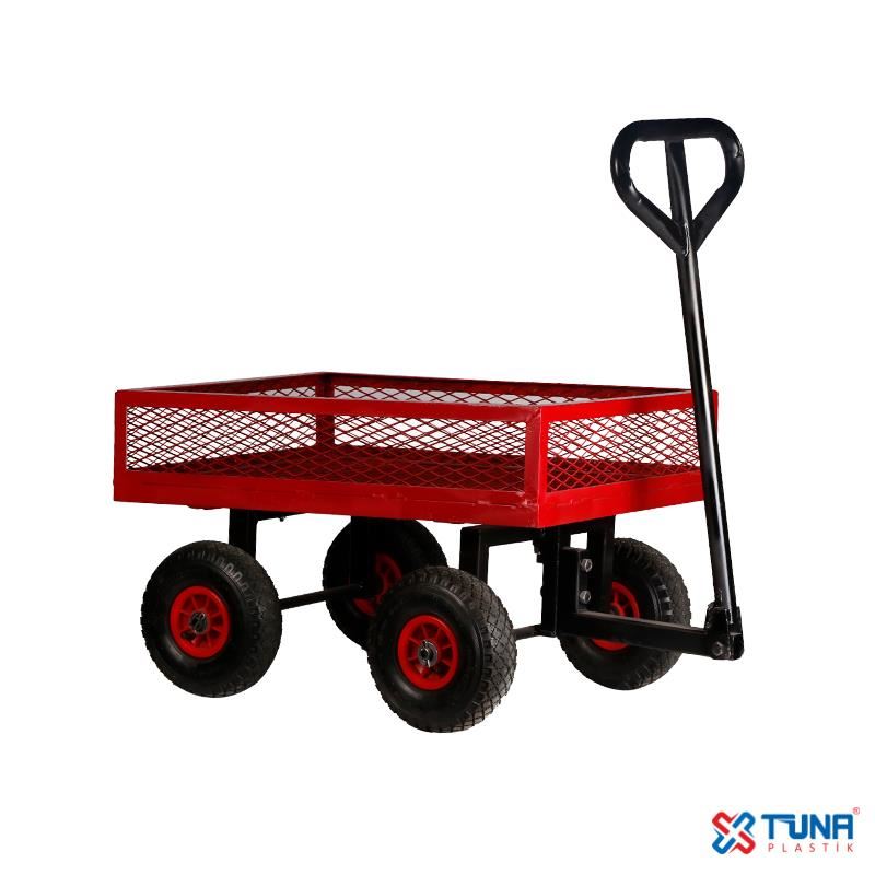 Açıklama : Bu ürünümüz, şasesi güçlendirilmiş kalın özel profil boru, L demir ve çelik teller ile güçlendirilerek statik fırın boya yöntemi ile kırmızı renkte üretilmiştir. Ürünümüz plastik jant havalı teker seçeneğiyle sunulmaktadır. Bu ürünümüz, zeminine 2 adet meyve kasası yerleştirilebilecek standartlarda tasarlanmıştır. Sera, bağ, bahçe, sanayi, inşaat alanlarında kasa, saman, balya, çuval, odun, kömür gibi malzemeleri taşımada esnek ve ergonomik yapısıyla yıllarca kullanabileceğiniz ürünümüz size ve işinize kolaylık sağlar.