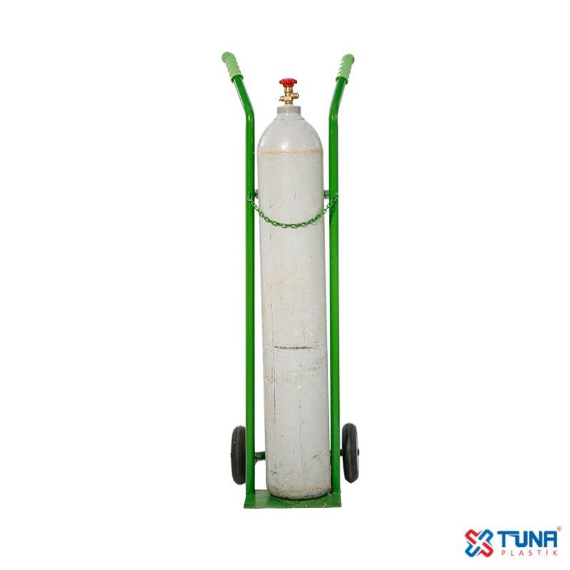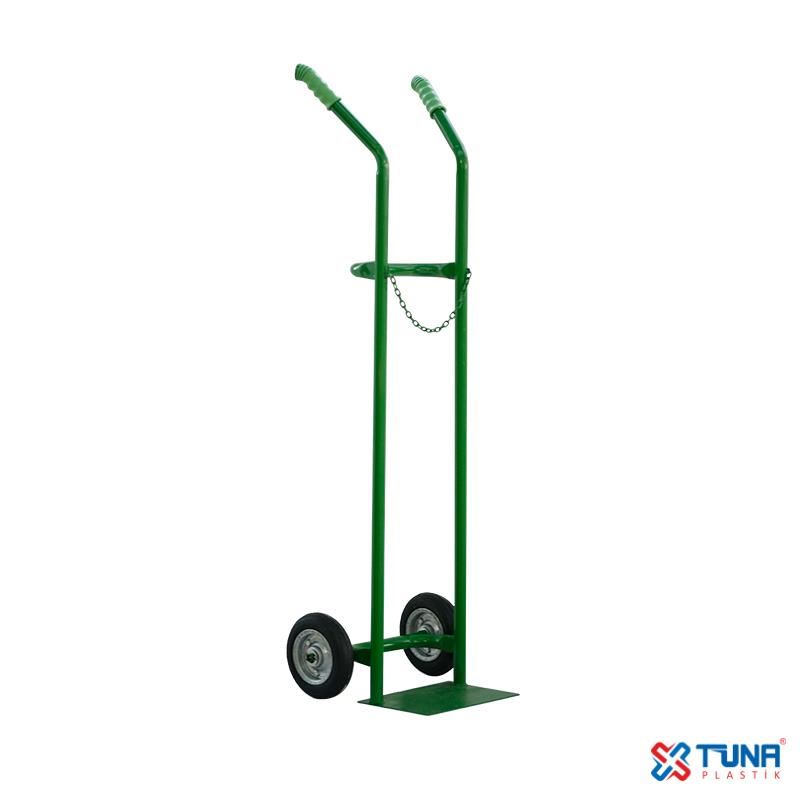 Açıklama : Bu ürünümüz, şasesi 1,5 mm kalınlığında özel borudan, 2 adet lama demirden tüp yatağı, 3 mm kalınlığında tüp taşıyıcı alt tabla, 1 adet emniyet zinciri ve statik fırın boya yöntemi ile yeşil renkte üretilmiştir. Ürünümüz 200 mm çapında, 50 mm genişliğinde 2 adet kauçuk dolgu teker seçeneğiyle sunulmaktadır. Bu ürünümüz 1 adet sanayi tipi oksijen tüpünü, emniyetli şekilde taşıma kapasitesine sahiptir.